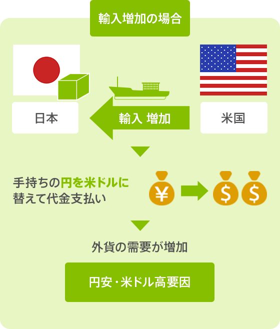 これを日本の通貨と外国の通貨の取引において貿易が影響するかというと