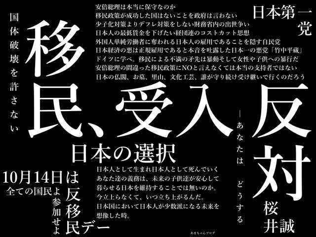 【拡散希望】10月14日『反移民デー』フライヤー