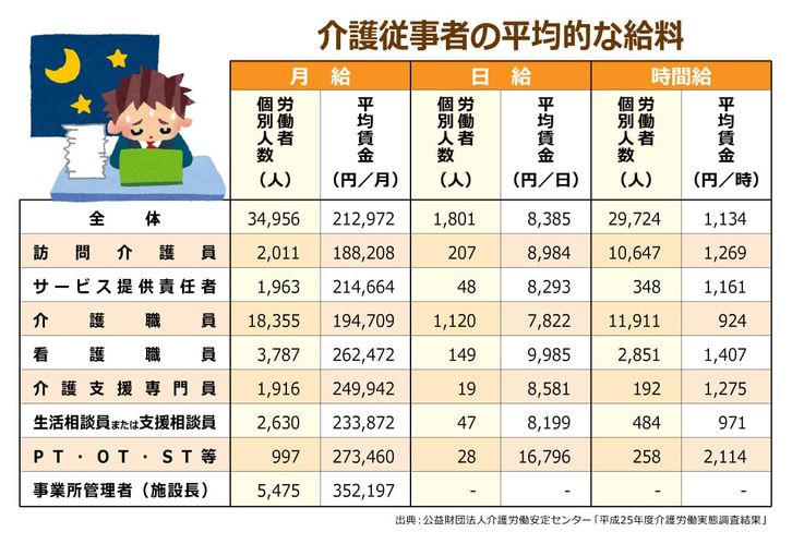 すくねー。圧倒的に少ない。介護職は本当に大変ですし、国家が補償しなければならない公共サービスですが、民営化して中抜きビジネスが横行し、政府支出も少なくされ僅かな補助金は、労働者に回らないというのは日本では常識になりつつあります。