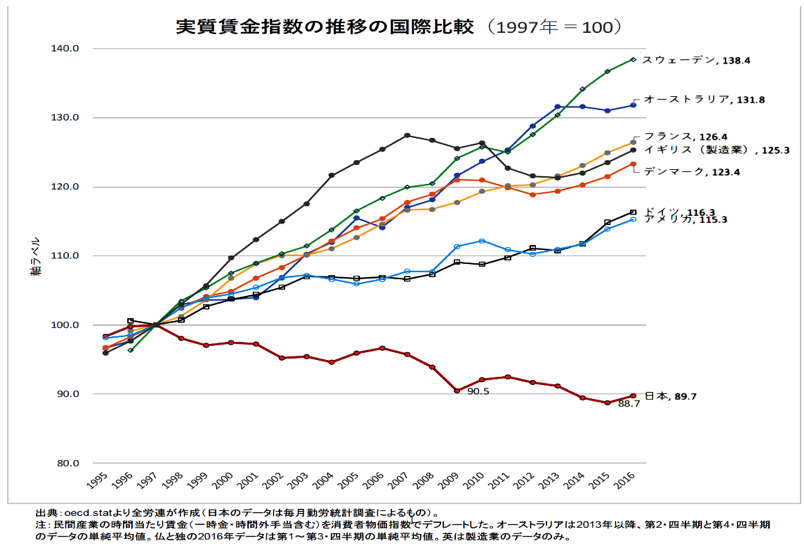 一番下が日本ですね。他の国はどんどん上昇をしています。経済がまともであればこうなるんですね。
