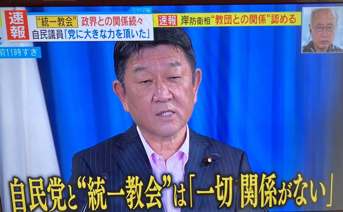 岸防衛大臣:「統一教会の皆さんは何人かは存じ上げています。お付き合いもありましたし、選挙の際もお手伝いを頂いたりしております」